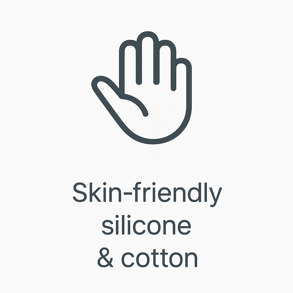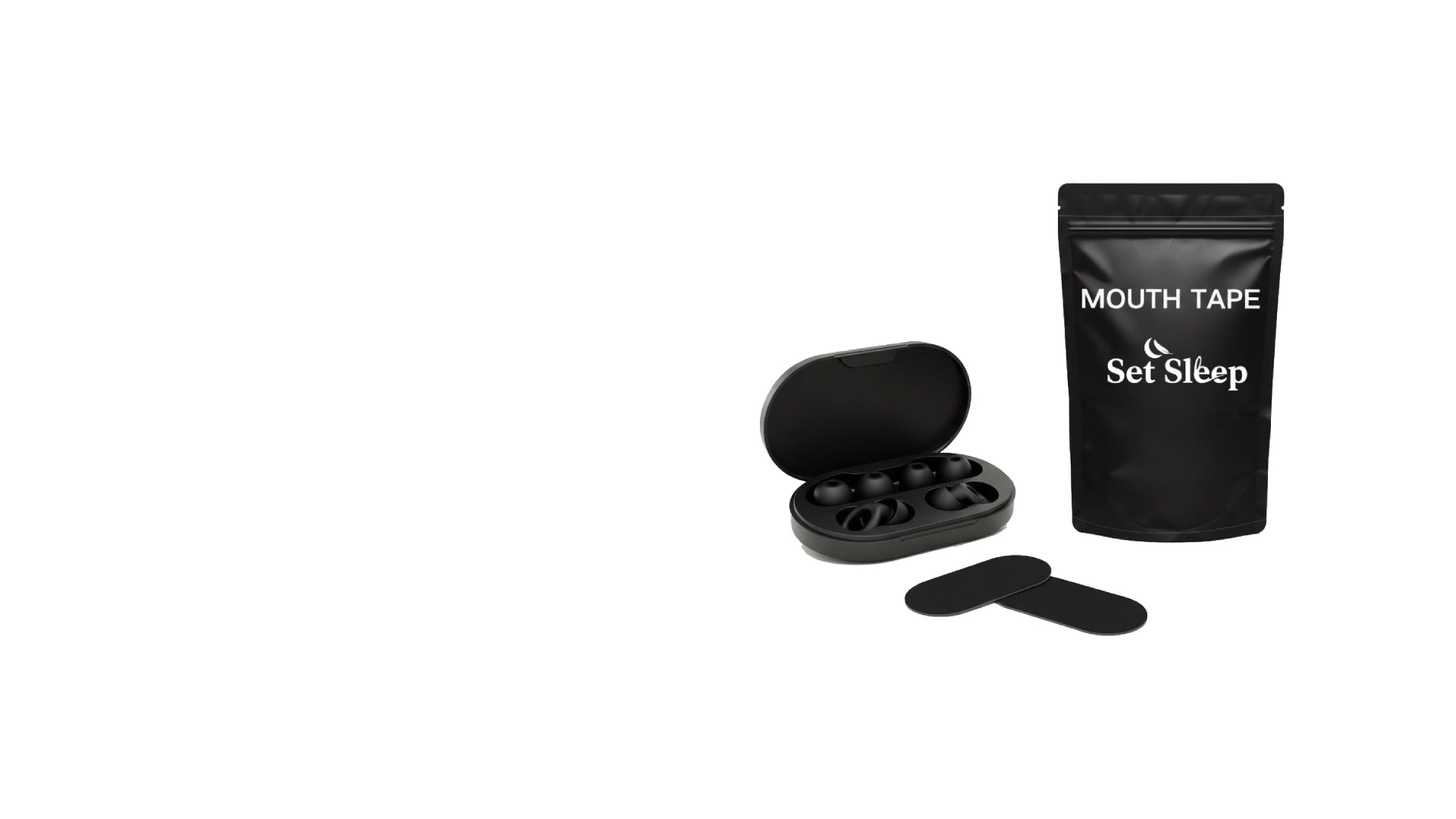 Soft silicone earplugs and cotton mouth tape designed to feel gentle, not rigid or irritating.